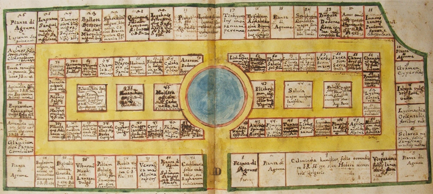 Scorrendo sulla mappa è possibile visualizzare l'immagine e la descrizione di alcune delle aiuole di questa sezione del giardino.